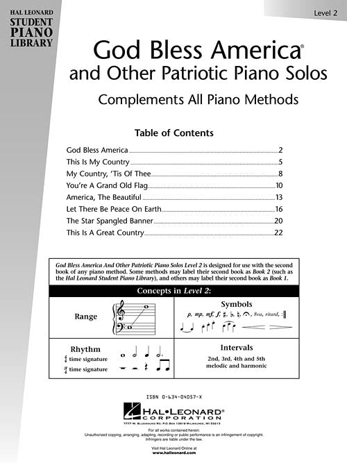 God Bless America® and Other Patriotic Piano Solos - Level 2 Hal Leonard Student Piano Library National Federation of Music Clubs 2020-2024 Selection Publisher: Hal Leonard Category: Educational Keyboard Series: Educational Piano Library Format: Paperback 8...Regular price $15.99 -