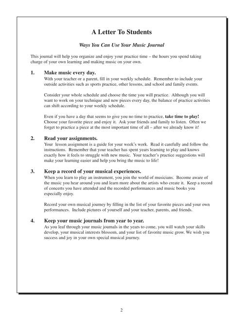 My Music Journal Student Assignment Book Hal Leonard Student Piano Library