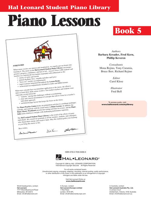 Piano Lessons Book 5 Hal Leonard Student Piano Library Publisher: Hal Leonard Category: Educational Keyboard Series: Educational Piano Library Format: Softcover In Book 5, students are introduced to sixteenth notes in various rhythm patterns. The wide...Regular price $11.99 -