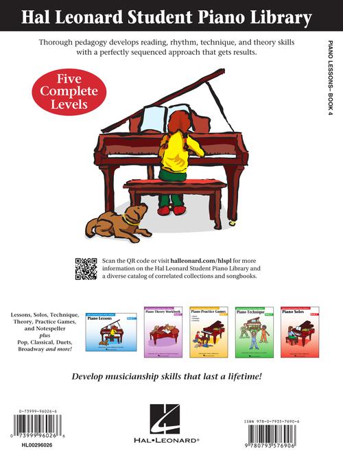 Piano Lessons Book 4 Hal Leonard Student Piano Library Publisher: Hal Leonard Category: Educational Keyboard Series: Educational Piano Library Format: Softcover Book 4 expands on the related five-finger patterns learned in Book 3 to introduce the...Regular price $11.99