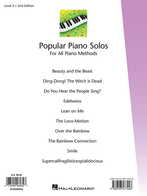 Popular Piano Solos - Level 2, 2nd Edition Hal Leonard Student Piano Library Publisher: Hal Leonard Category: Educational Keyboard Series: Educational Piano Library Format: Softcover This great collection of pop songs correlates with Hal Leonard Student...Regular price $11.99 -