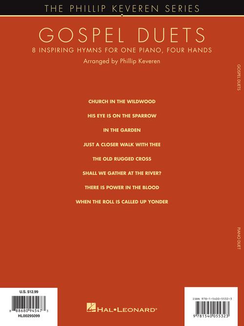 Arranger: Phillip Keveren Gospel Duets arr. Phillip Keveren The Phillip Keveren Series Piano Duet Publisher: Hal Leonard Category: Educational Keyboard Series: Piano Duet Format: Softcover Eight inspiring hymns arranged by Phillip Keveren for one piano, four...Regular price $19.99 -
