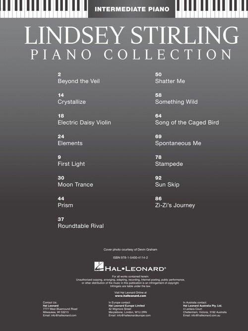 Lindsey Stirling - Piano Collection 15 Piano Solo Arrangements Publisher: Hal Leonard Category: Keyboard & Piano/Vocal/Guitar Series: Piano Solo Personality Format: Softcover If you love the violin music of Lindsey Stirling but your instrument of choice...Regular price $23.99 -