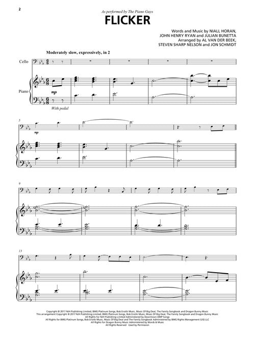 Artist: The Piano Guys Flicker as Performed by The Piano Guys Publisher: Hal Leonard Category: Solo Instrumental Series: Cello Piano Format: Softcover Piano/cello arrangements of The Piano Guys' beautiful version of Flicker. the hit single from...Regular price $7.99 -