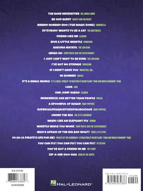 Disney Fun Songs Publisher: Hal Leonard Category: Keyboard & Piano/Vocal/Guitar Series: Easy Piano Songbook Format: Softcover 26 fun Disney favorites arranged at an easier level, including: The Bare Necessities · Be Our Guest · Bibbidi-Bobbidi-Boo (The...Regular price $29.99 -