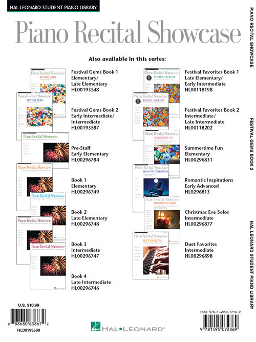 Festival Gems Book 3 - 8 Outstanding NFMC Late Intermediate/Early Advanced Solos Piano Recital Showcase Publisher: Hal Leonard Category: Educational Keyboard Series: Educational Piano Library Format: Softcover This handy collection features 8 NFMC-selected piano solos at...Regular price $13.99