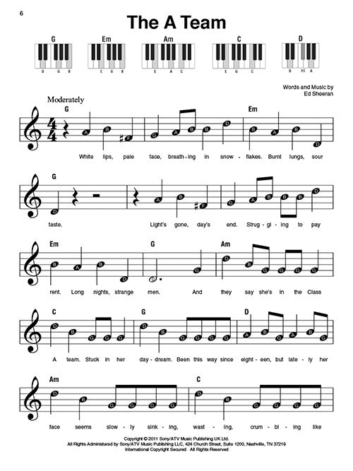 Hit Songs - Super Easy Songbook Publisher: Hal Leonard Category: Keyboard & Piano/Vocal/Guitar Series: Super Easy Songbook Format: Softcover It's super easy! This series features accessible arrangements for piano, with simple right-hand melody, letter names inside...Regular price $21.99 -
