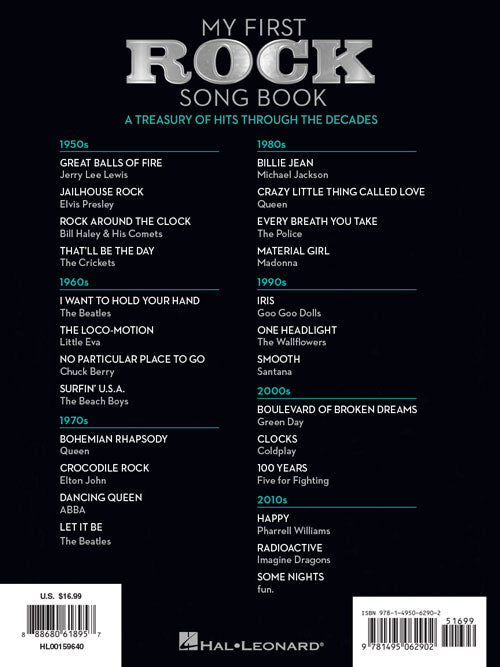 My First Rock Song Book Publisher: Hal Leonard Category: Keyboard & Piano/Vocal/Guitar Series: Easy Piano Songbook Format: Softcover A beautifully illustrated collection of rock classics from throughout the decades, including: Billie Jean · Bohemian Rhapsody ·...Regular price $21.99 -