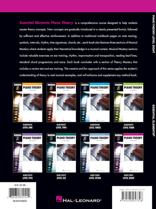 Essential Elements Piano Theory - Level 8 Publisher: Hal Leonard Category: Educational Keyboard Series: Educational Piano Library Format: Softcover Essential Elements Piano Theory is a comprehensive course designed to help students master theory concepts. New concepts...Regular price $10.99 -