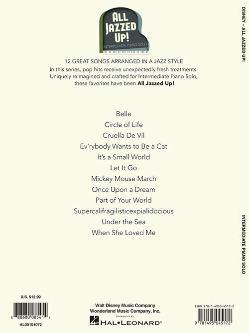 Disney - All Jazzed Up! Intermediate Piano Solos Publisher: Hal Leonard Category: Keyboard & Piano/Vocal/Guitar Series: Piano Solo Songbook Format: Softcover In this series, pop hits receive unexpected fresh treatments. Uniquely reimagined and crafted for intermediate...Regular price $23.99 -