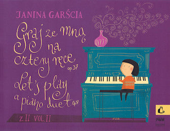 Composer: Janina Garscia Let's Play a Piano Duet Op. 37 Vol. 2 Softcover Collection of original pieces for young beginners new to playing duets. Ideal for sight-reading within a lesson. Inventory # : 00150217 UPC: 888680094089...Regular price $13.99 -