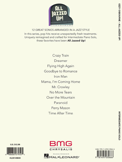 Ozzy Osbourne - All Jazzed Up! Publisher: Hal Leonard Category: Keyboard & Piano/Vocal/Guitar Series: Piano Solo Personality Format: Softcover In this series, pop hits receive unexpected fresh treatments. Uniquely reimagined and crafted for intermediate piano solo,...Regular price $15.99 -