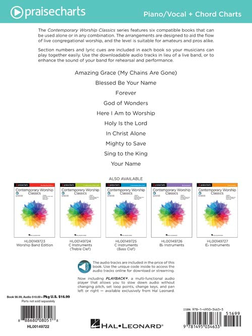 Artist: Various Contemporary Worship Classics PraiseCharts Series Piano/Vocal + Chord Charts Softcover Audio Online The PraiseCharts series features six compatible books that can be used alone or in any combination. ·Arrangements are designed to aid the...Regular price $20.99 -