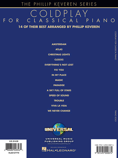 Coldplay for Classical Piano arr. Phillip Keveren The Phillip Keveren Series Piano Solo Publisher: Hal Leonard Category: Keyboard & Piano/Vocal/Guitar Series: Piano Solo Personality Format: Softcover Phillip Keveren takes on Coldplay with these 14 arrangements in...Regular price $23.99