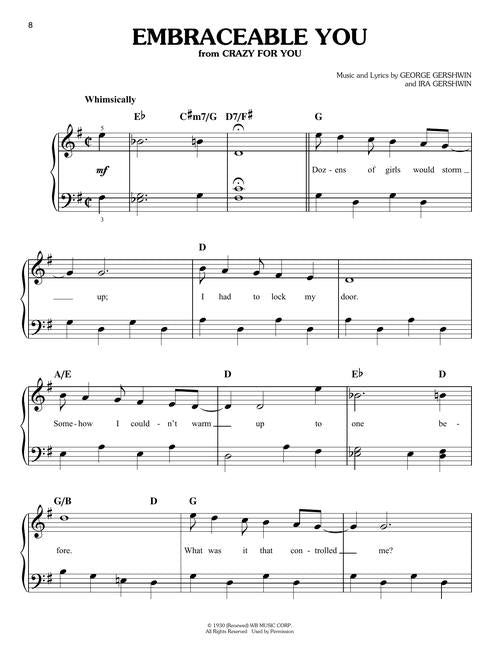 George Gershwin for Easy Piano Publisher: Hal Leonard Category: Keyboard & Piano/Vocal/Guitar Series: Easy Piano Composer Collection Format: Softcover Over 20 Gershwin favorites arranged at an easier level, including: Embraceable You · Fascinating Rhythm · I...Regular price $23.99 -