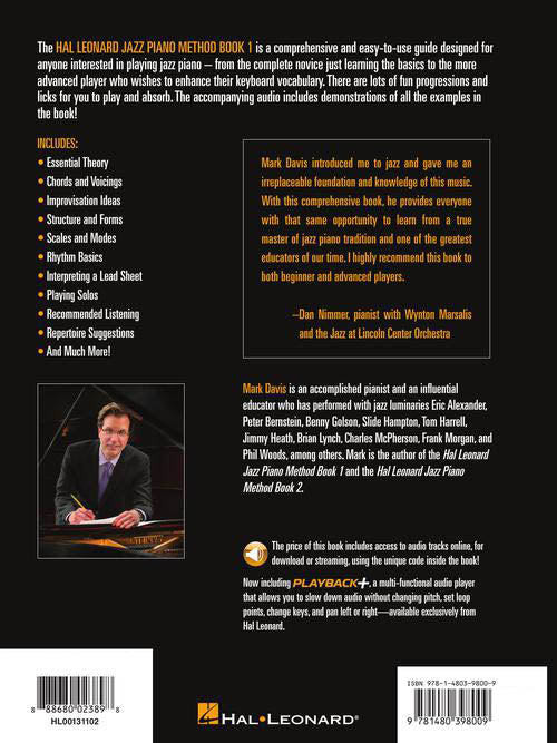 Author: Mark Davis Hal Leonard Jazz Piano Method Book 1 Softcover Audio Online The Hal Leonard Jazz Piano Method is a comprehensive and easy-to-use guide designed for anyone interested in playing jazz piano - from the...Regular price $29.99 -