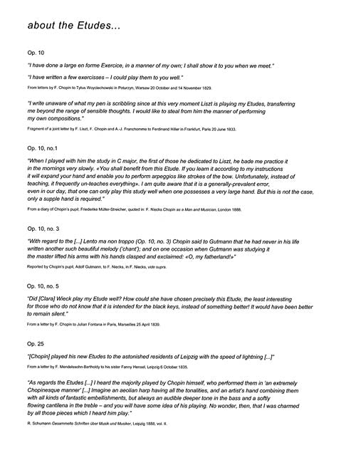 Composer: Frederic Chopin Etudes Chopin National Edition 2A, Vol. II Softcover Includes the Etudes of Op. 10 and Op. 25, and the three Etudes without opus number. Chopin's Etudes address aspects of piano performance by one...Regular price $33.99 -