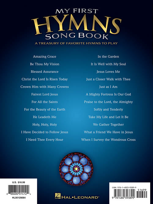 My First Hymns Song Book A Treasury of Favorite Hymns to Play Publisher: Hal Leonard Category: Keyboard & Piano/Vocal/Guitar Series: Easy Piano Songbook Format: Softcover A beautiful full-color collection of 24 illustrated hymns, including: Amazing Grace...Regular price $20.99