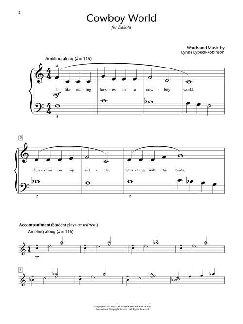 Cowboy World Hal Leonard Student Piano Library Showcase Solo Level 2 Elementary Publisher: Hal Leonard Category: Educational Keyboard Series: Educational Piano Library Format: Paperback With lyrics like Sunshine on my saddle, whistling with the birds... beginning...Regular price $4.99 -