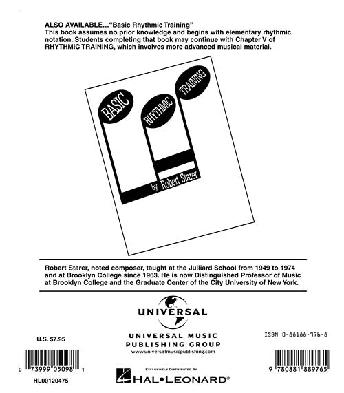 Author: Robert Starer Rhythmic Training Softcover A continuation of Basic Rhythmic Training, this collection of progressive rhythmic drills is designed to increase a music student's proficiency in executing and understanding Rhythm. The exercises begin very simply...Regular price $17.99 -