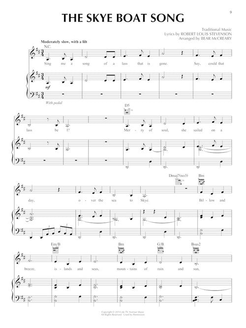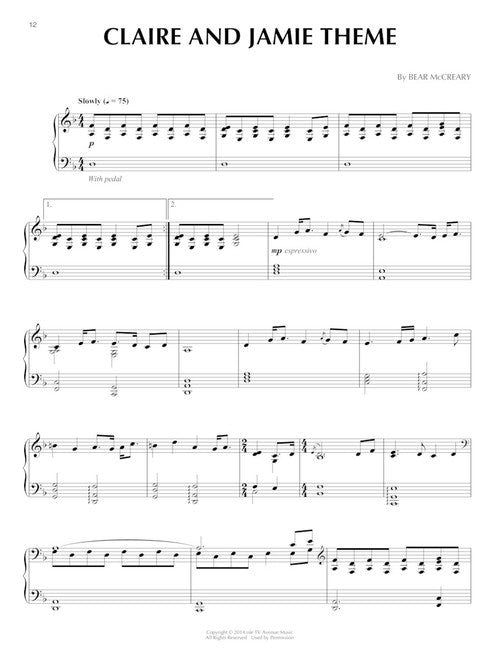 Outlander: The Series Music from the Original Television Soundtrack Publisher: Hal Leonard Category: Keyboard & Piano/Vocal/Guitar Series: Piano Solo Songbook Format: Softcover A dozen musical selections by Bear McCreary from this popular British-American period TV drama...Regular price $29.99