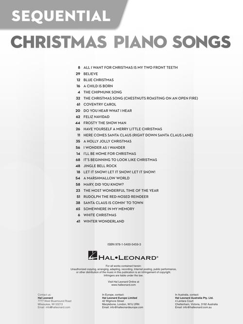 Sequential Christmas Piano Songs Easy Piano Songbook