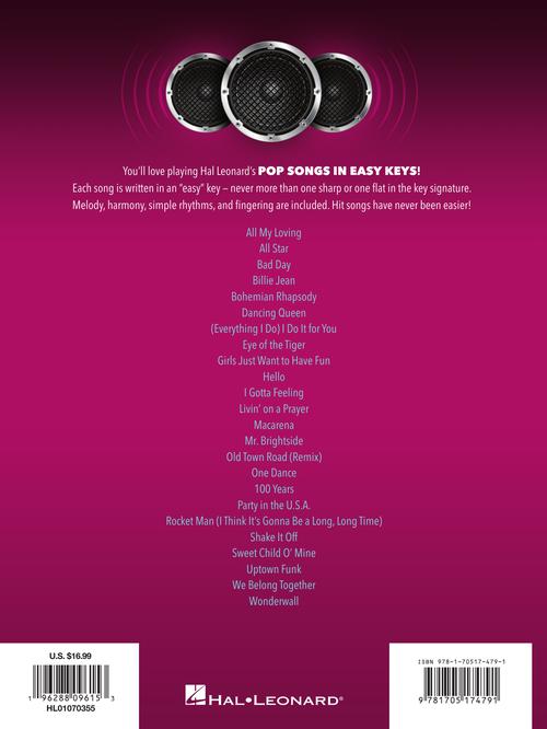 Pop Songs - In Easy Keys Never More Than One Sharp or Flat! Publisher: Hal Leonard Category: Keyboard & Piano/Vocal/Guitar Series: Easy Piano Songbook Format: Softcover You'll love playing from the Hal Leonard In Easy Keys...Regular price $22.99 -