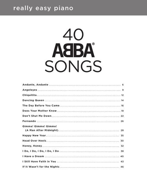 Really Easy Piano 40 Abba Songs Really Easy Piano Hal Leonard