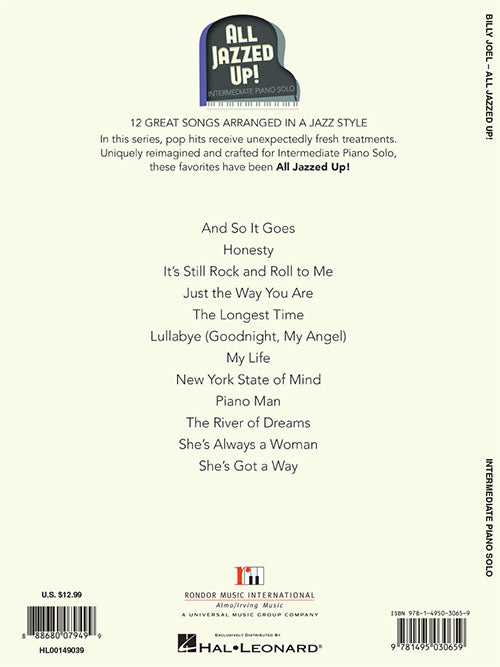Billy Joel - All Jazzed Up! Publisher: Hal Leonard Category: Keyboard & Piano/Vocal/Guitar Series: Piano Solo Personality Format: Softcover In this series, pop hits receive unexpected fresh treatments. Uniquely reimagined and crafted for intermediate piano solo,...Regular price $23.99 -