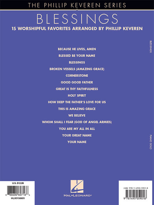 Blessings arr. Phillip Keveren The Phillip Keveren Series Piano Solo Publisher: Hal Leonard Category: Keyboard & Piano/Vocal/Guitar Series: Piano Solo Songbook Format: Softcover Phillip Keveren delivers another stellar collection of piano solo arrangements perfect for any...Regular price $20.99 -