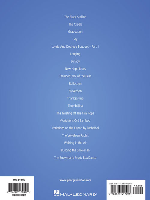 George Winston Piano Solos Publisher: Hal Leonard Category: Keyboard & Piano/Vocal/Guitar Series: Piano Solo Personality Format: Softcover The All Music Guide says that pianist & composer George Winston is among the earliest and most successful proponents...Regular price $31.99