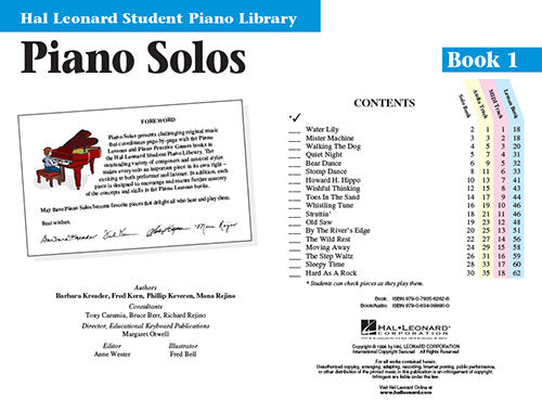 Piano Solos Book 1 Hal Leonard Student Piano Library Publisher: Hal Leonard Category: Educational Keyboard Series: Educational Piano Library Format: Softcover Piano Solos books feature original performance repertoire from 14 different composers. These inviting compositions provide...Regular price $10.99 -