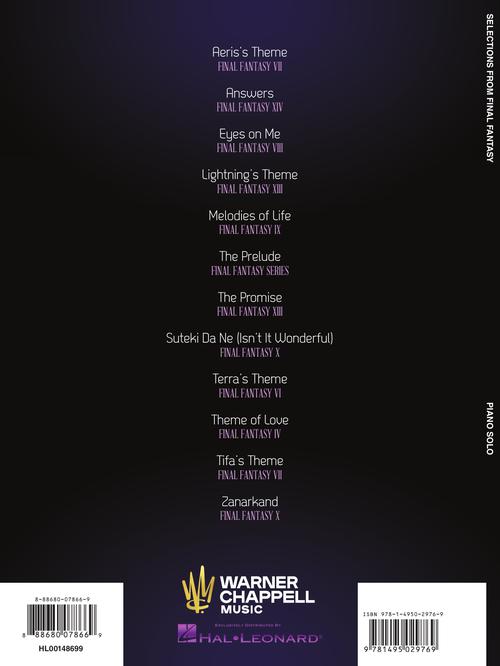 Composer: Various Selections from Final Fantasy Softcover A dozen favorites from the hit video game series in piano solo notation, including: Aeris's Theme · Eyes on Me · Melodies of Life · The Prelude · The...Regular price $27.99 -