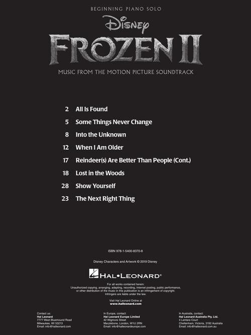 Frozen 2 Beginning Piano Solo Songbook Music From The Motion Picture Soundtrack