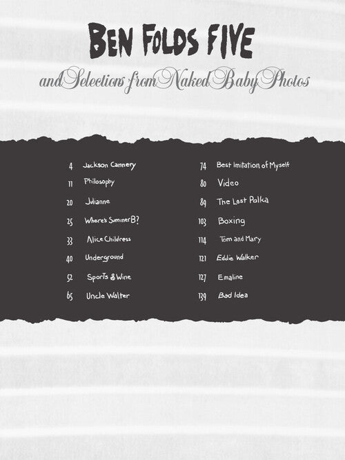 Artist: Ben Folds Five Ben Folds Five and Selections from Naked Baby Photos Publisher: Hal Leonard Category: Keyboard & Piano/Vocal/Guitar Series: Transcribed Score Format: Paperback Guitar Tab: YES Note-for-note transcriptions in score format for 16 songs...Regular price $35.99 -