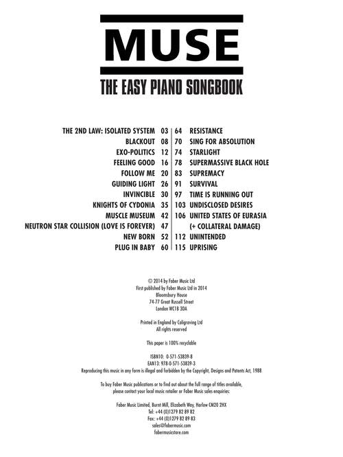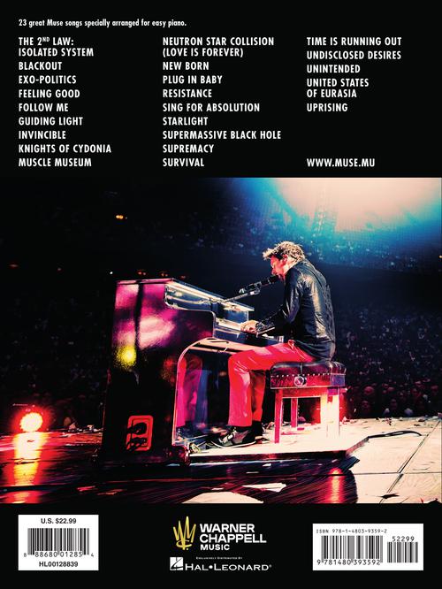 Muse - The Easy Piano Songbook Publisher: Hal Leonard Category: Keyboard & Piano/Vocal/Guitar Series: Easy Piano Personality Format: Softcover 23 great Muse songs specifically arranged for easy piano: Blackout · Exo-Politics · Feeling Good · Follow...Regular price $31.99