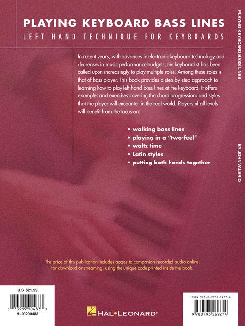 Author: John Valerio Playing Keyboard Bass Lines Left-Hand Technique for Keyboards Publisher: Hal Leonard Category: Educational Keyboard Series: Piano Method Format: Softcover Audio Online This step-by-step approach to learning how to play left-hand bass lines at...Regular price $26.99 -