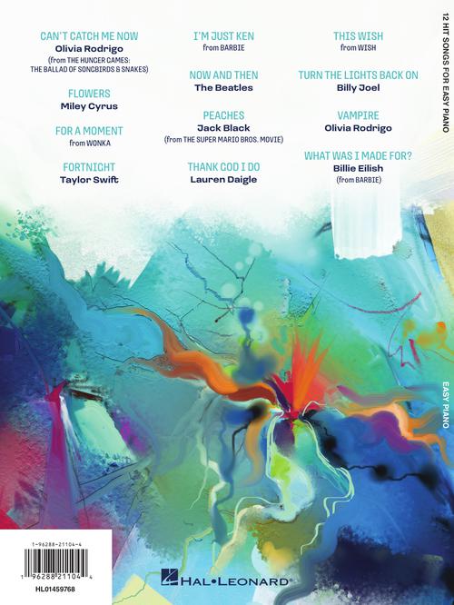 12 Hit Songs for Easy PianoPublisher: Hal LeonardCategory: Keyboard & Piano/Vocal/GuitarSeries: Easy Piano SongbookFormat: SoftcoverFeaturing songs from your favorite artists like Olivia Rodrigo, Taylor Swift, and Billie Eilish, this collection is perfect for beginning piano players...Regular price $23.99 -