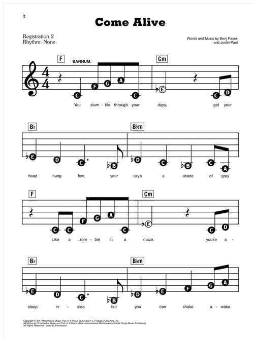 The Greatest Showman E Z Play Today 99
