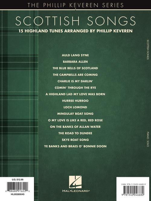 Scottish Songs 15 Highland Tunes The Phillip Keveren Series Piano Solo Publisher: Hal Leonard Category: Keyboard & Piano/Vocal/Guitar Series: Piano Solo Songbook Format: Softcover 15 Highland tunes masterfully arranged for piano solo by Phillip Keveren. Includes:...Regular price $19.99 -