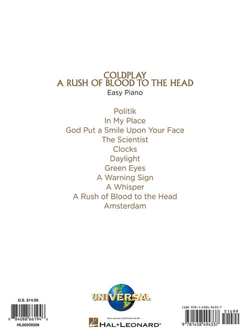 Coldplay A Rush Of Blood To The Head Easy Piano Personality