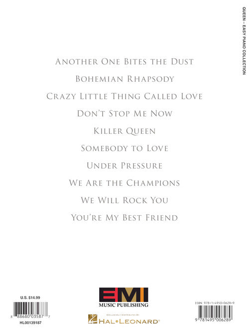 Queen - Easy Piano Collection Publisher: Hal Leonard Category: Keyboard & Piano/Vocal/Guitar Series: Easy Piano Personality Format: Softcover Ten top tunes from glam rock gods Queen arranged for easy piano: Another One Bites the Dust ·...Regular price $27.99 -