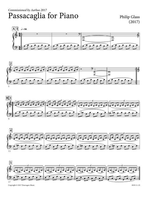 Composer: Philip Glass Passacaglia for Piano Publisher: Dunvagen/Chester Music Category: Keyboard & Piano/Vocal/Guitar Series: Piano Format: Softcover Passacaglia for Piano Inventory # : 00356377 UPC: 840126940992 ISBN: 1705112285 Width: 9" Length: 12" Height: 0.053" Product Weight:...Regular price $11.99 -