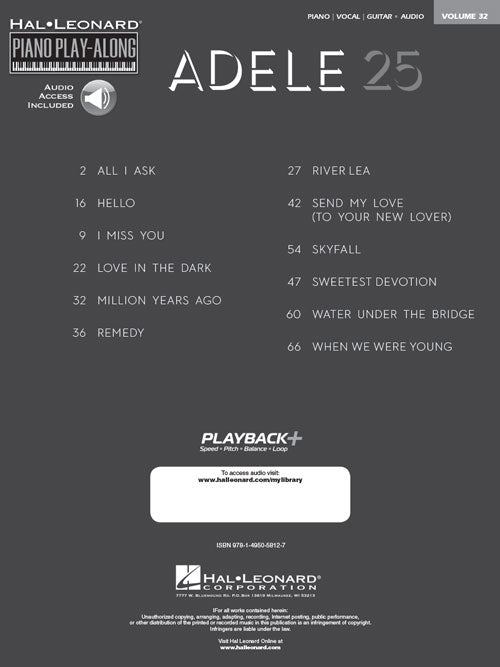 Adele 25 Piano Play Along Volume 32 Softcover Audio Online