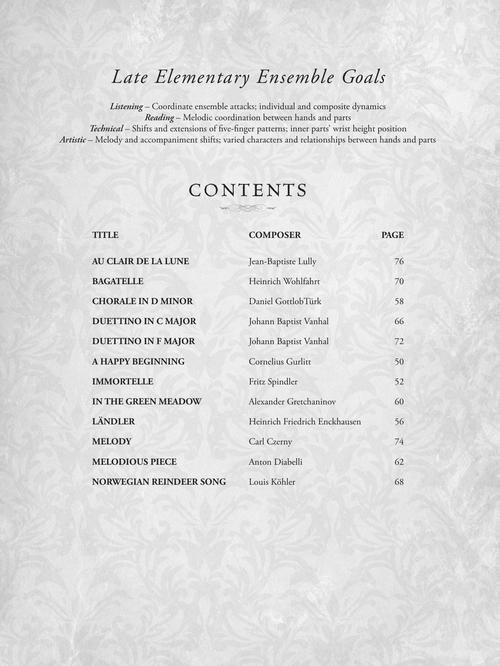 Journey Through the Classics - Piano Duets 58 Essential Masterworks Publisher: Hal Leonard Category: Educational Keyboard Series: Educational Piano Library Format: Softcover Featuring 58 carefully curated classical duets from elementary to intermediate, this 1 piano, 4...Regular price $33.99 -
