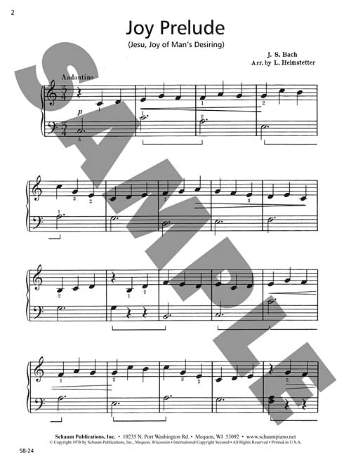 Composer: George Fredrick Handel Joy to the World Level 2 Late Elementary Level Publisher: Schaum Publications Category: Educational Keyboard Series: Educational Piano Format: Softcover This magnificent Christmas theme is great for recitals and family gatherings. Inventory...Regular price $3.99 -