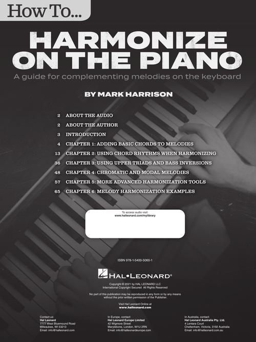 Author: Mark Harrison How to Harmonize on the Piano A Guide for Complementing Melodies on the Keyboard Publisher: Hal Leonard Category: Keyboard & Piano/Vocal/Guitar Series: Piano Instruction Format: Softcover Audio Online The topic of applying harmony...Regular price $21.99