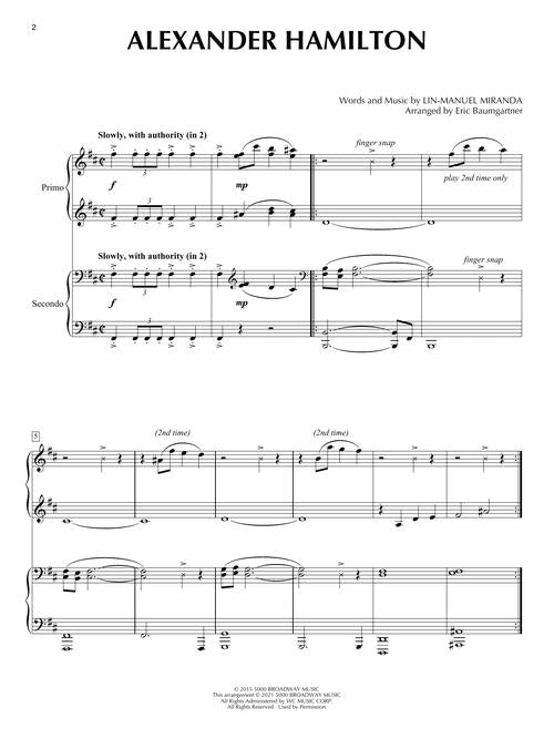 Hamilton For Piano Duet Intermediate Level Arrangements For 1 Piano 4 Hands