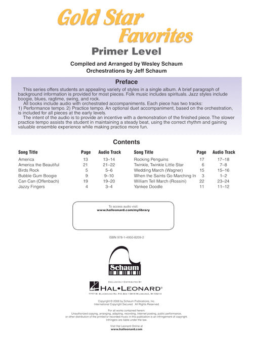 Arranger: Wesley Schaum Gold Star Favorites Primer Level Publisher: Schaum Publications Category: Educational Keyboard Series: Educational Piano Format: Softcover Audio Online NFMC 2016-2020 Pre-Primary selection. This series offers students an appealing variety of styles in a...Regular price $10.99