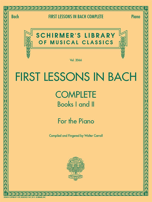 First Lessons in Bach, Complete Schirmer Library of Classics Volume 2066 For the Piano Publisher: G. Schirmer, Inc. Category: Educational Keyboard Series: Piano Collection Format: Softcover Books I and II of this traditional edition in Schirmer's...Regular price $13.99 -
